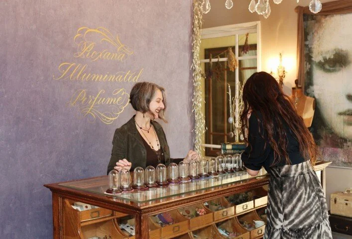 Illuminated Perfume is a small, one-woman, plant-based perfumery founded by Roxane Villa. Roxane creates delicate, divinely inspired fragrances using pure plant botanicals, blending ancient traditions with a fine-art sensibility. Each perfume is crafted as both a sensory and artistic experience.