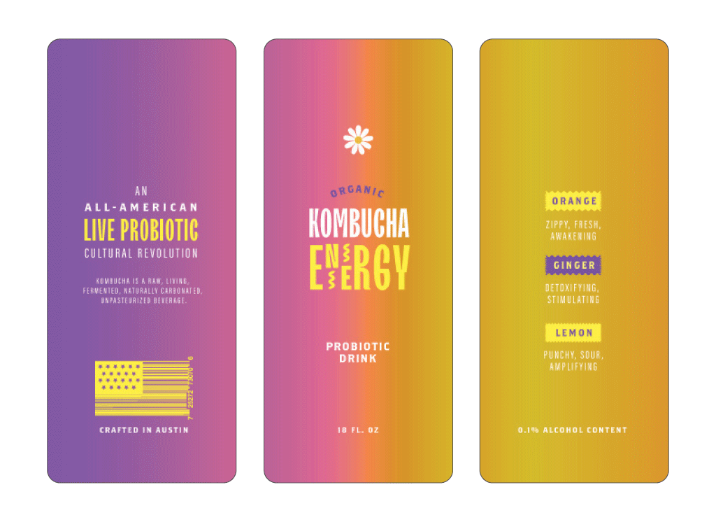 A persona-driven kombucha concept inspired by Austin festival culture, psychedelic color, and a shift from nightlife to wellness. The project explores how lifestyle, values, and material choices shape authentic packaging design.