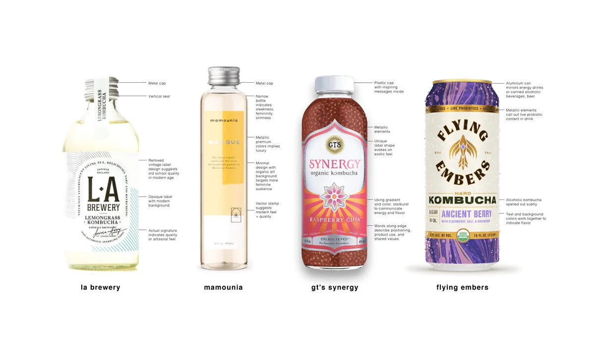 I did an initial packaging audit in the Kombucha category to see what else existed in the space and how I might define a niche for this product.