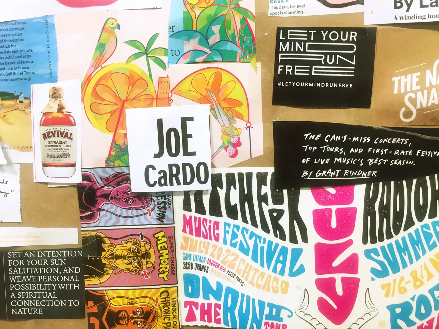 I developed three flavor variations to explore the concept further using what worked, and refining what didn’t work. The typography colors are type treatment were bugging me the most, so I returned to Claire’s mood board and pulled inspiration from the “Joe Cardo” snippet. This is what happened: